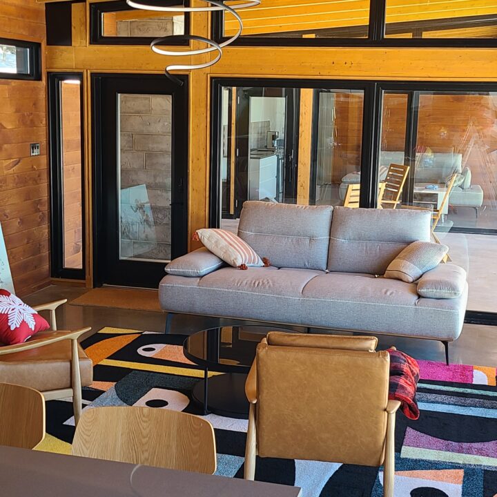 Le Retreat est une propriété d’exception où la lumière pénètre par les murs rideaux intégrés dans une structure en bois lamellé-collé et offrant une vue imprenable sur les montagnes grâce à sa fenestration exceptionnelle. Le Retreat s’harmonise avec la nature avec de grands espaces où la lumière naturelle prend tout son éclat.