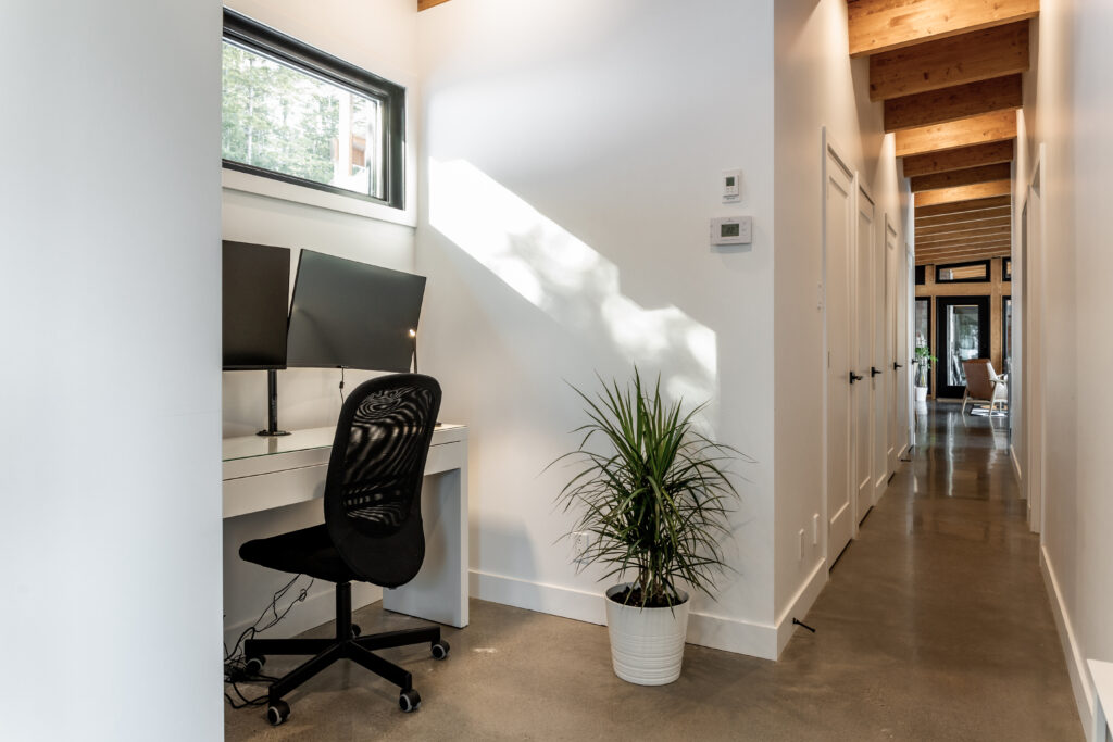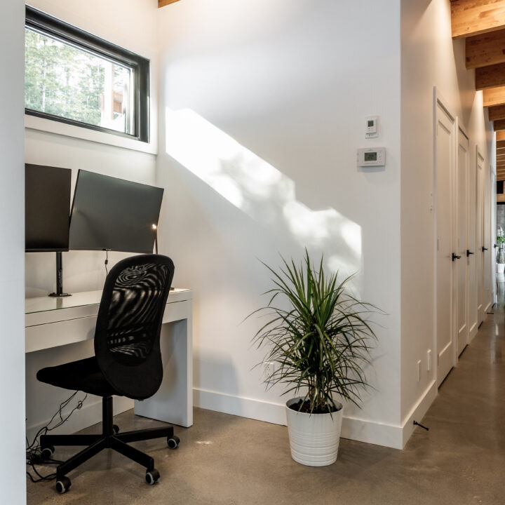 De part sa conception et sa position, la propriété reçoit la lumière naturelle avec sa fenestration abondante. Toutes les pièces de la propriété bénéficient d’une vue à 180 degrés sur les montagnes en face.